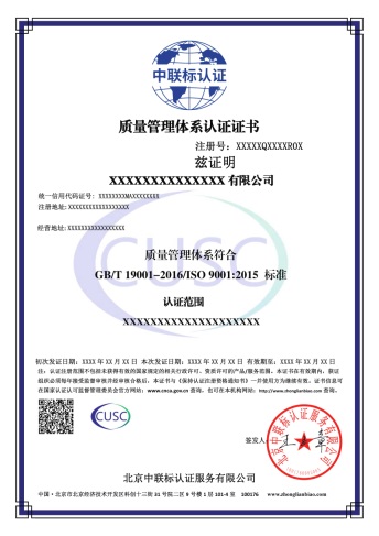 中联标认证是从事第三方认证服务的机构,作为技术密集型和专业服务型组织,中联标认证注重技术研发,可同时为组织提供GB/T 19001/ISO 9000、GB/T 24001/ISO 14001、GB/T 45001/ISO 45001等多种管理体系认证服务。遵循国家现行有效的认证认可法律、法规和规章,按照CNAS-CC01等认可准则GB/T19011标准要求,建立并有效运行自身管理体系,确保对组织进行管理体系审核等方面的客观、公正性。