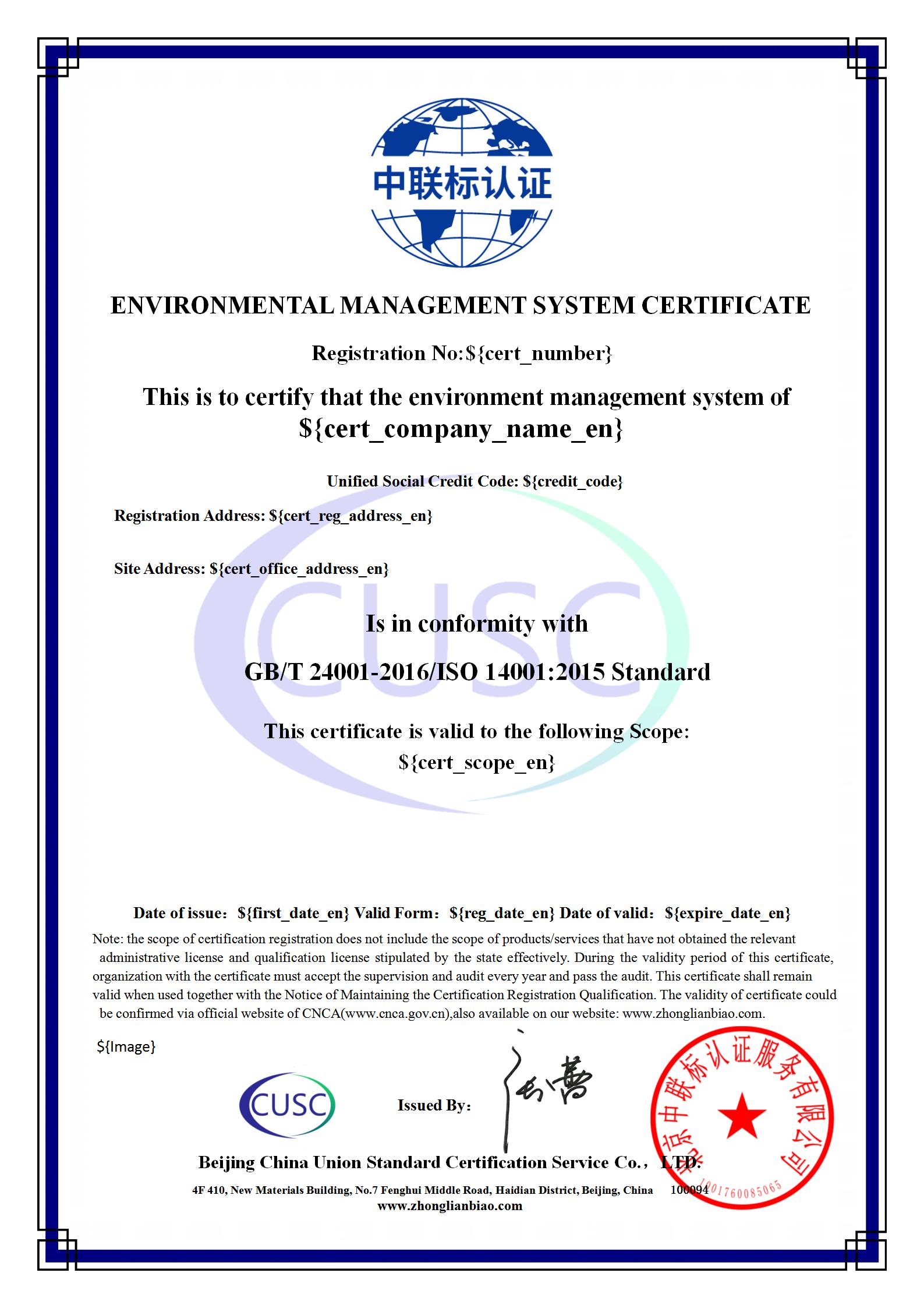 英文名称:Beijing China Union Standard Certification Service Co.,LTD.),简称:中联标认证(CUSC),统一社会信用代码91110302MA01Y2HQXA 批准号CNCA-R-2021-914。